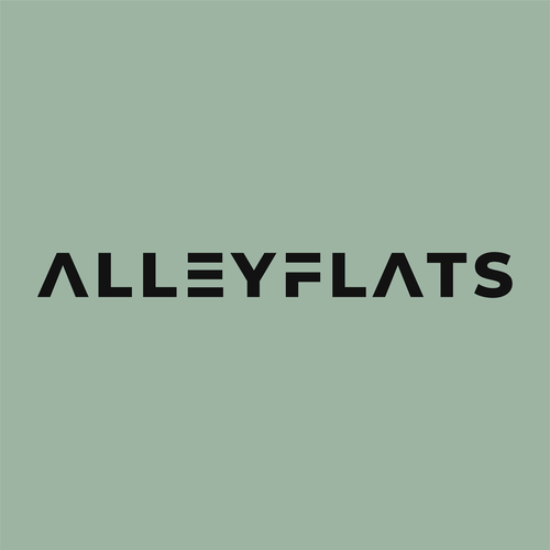 Architecturally inspired visual language: Refined logotype and layout system reflect modular design thinking—perfectly aligned with AlleyFlats’ prefab offering.