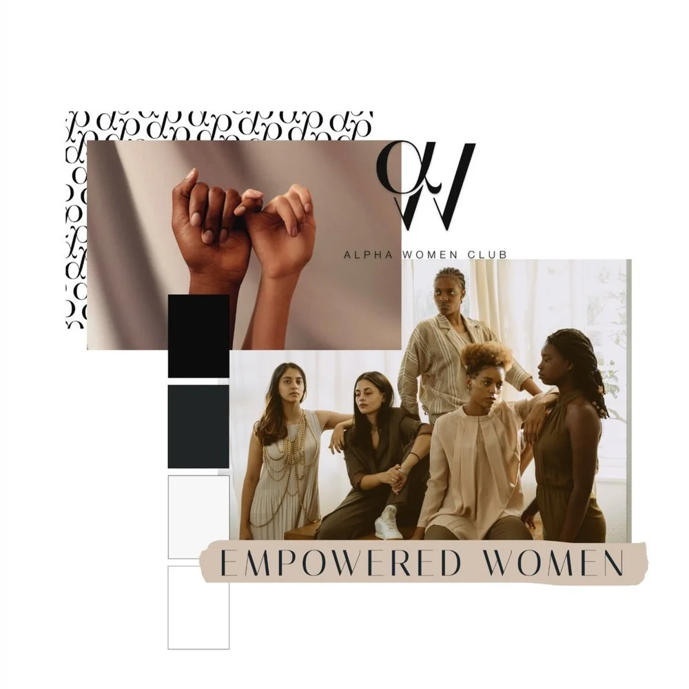 Alpha Women Club’s identity blends classic design principles with a bold, modern edge. At the centre is the custom-designed “αw” monogram—a minimal yet meaningful emblem fusing the Greek alpha symbol with a stylised “W.” It’s more than a visual—it’s a symbol of leadership, unity, and sophistication. Designed to be instantly recognisable, it serves as both a brand mark and a badge of belonging.