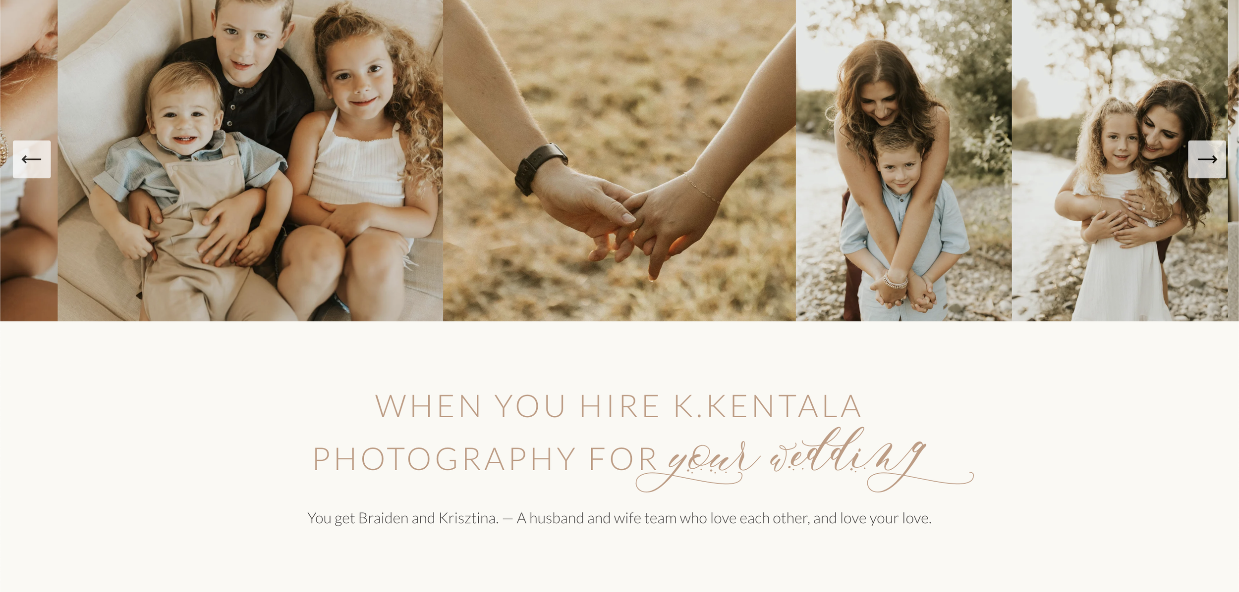 The creative direction for Krisztina Kentala Photography was all about translating a deeply personal brand into a luxurious yet approachable online experience. Inspired by her love for neutral tones, handwritten typography, and emotional storytelling, we built a layout that evokes softness, warmth, and intentionality. The design leans into spacious, minimal sections where imagery can breathe and emotions come through. Elegant script headlines offer a romantic, feminine feel, while muted backgrounds keep the overall aesthetic grounded and clean. Every detail—from the hero imagery to the footer layout—was crafted to create a visual language that feels like a natural extension of Krisztina’s photography style: relaxed, refined, and full of life.