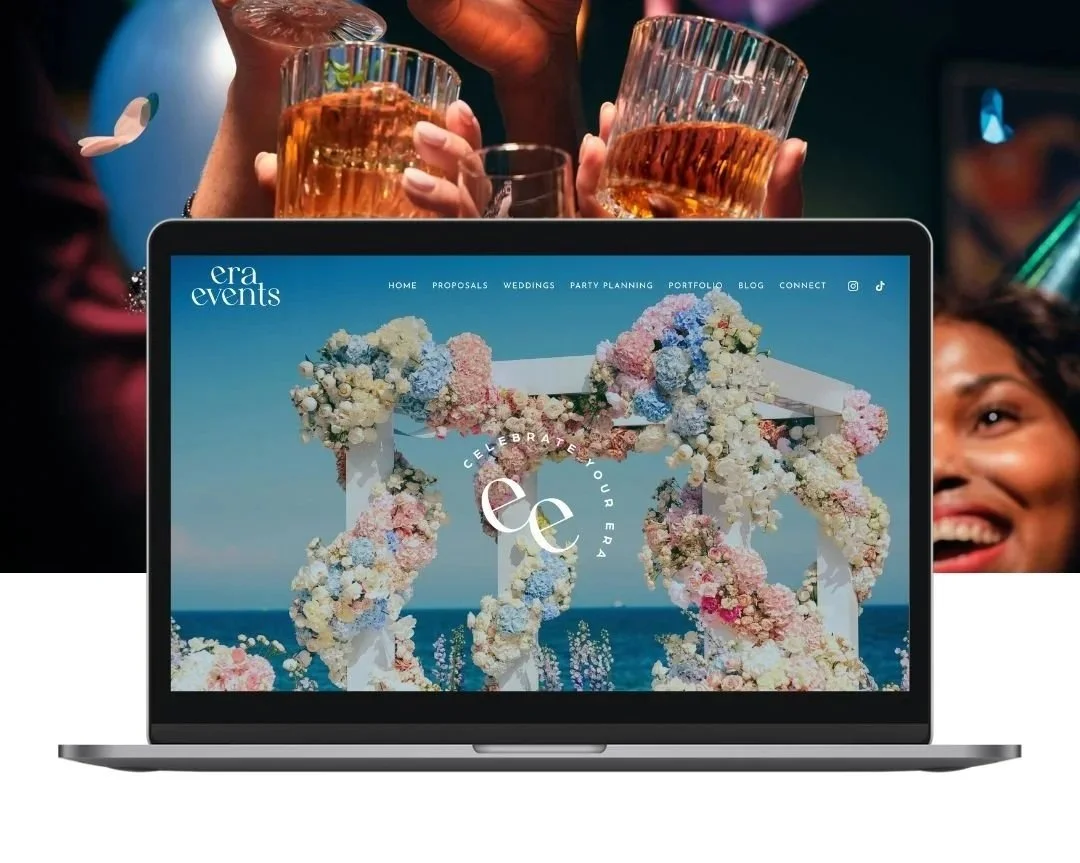 The My Era Events website was designed to evoke the emotional essence of celebration—joy, elegance, and intimacy. From the first scroll, visitors are welcomed into a digital experience that mirrors the feeling of walking into a beautifully curated event. The design direction draws inspiration from fine art and editorial styling, with soft neutrals, delicate typography, and intentional white space creating a serene, high-end feel. This aesthetic wasn’t just about beauty—it was crafted to reflect the heart of the business: creating bespoke, unforgettable moments for clients.