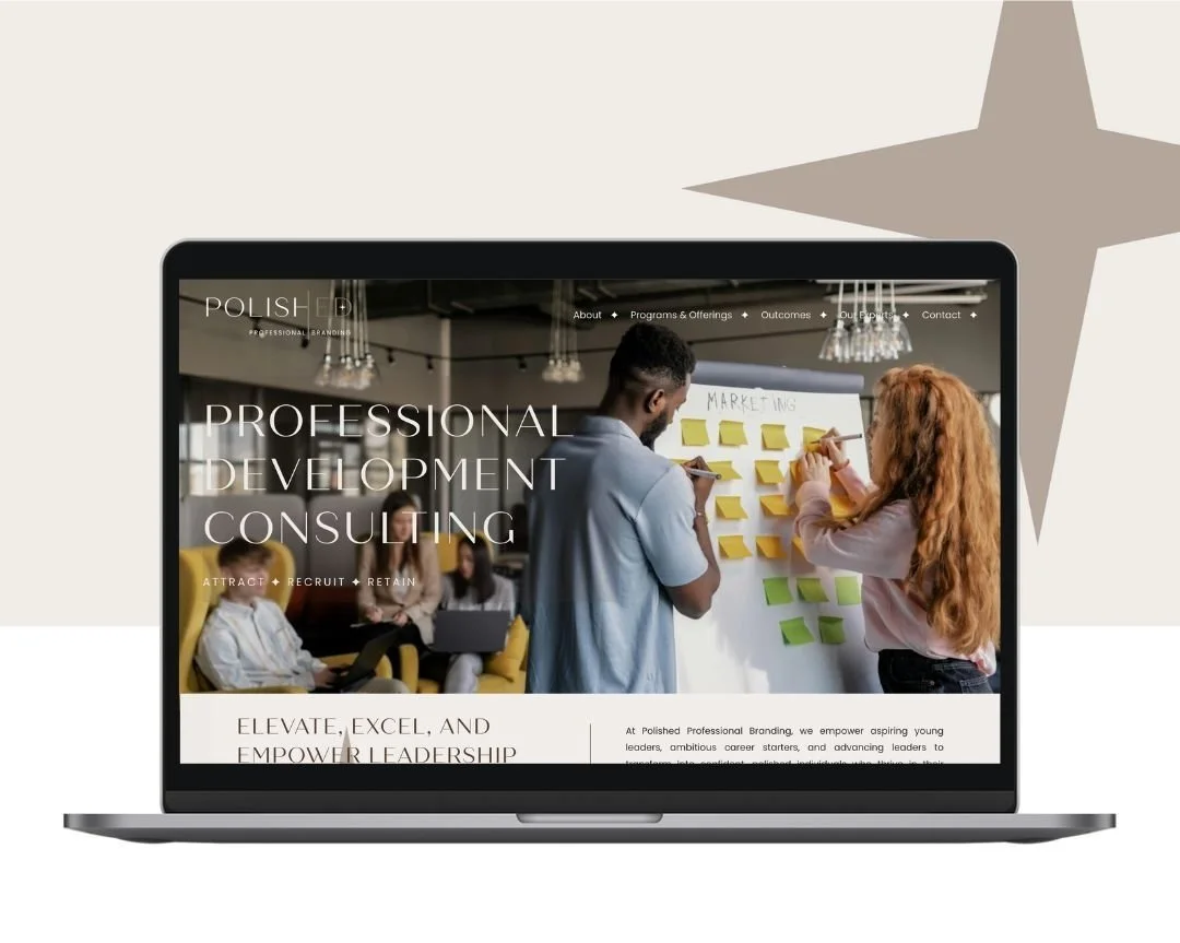 Every detail was chosen to reflect confidence and credibility—from the way headlines are weighted to the use of warm neutrals and clean layouts. The site feels custom, curated, and personal—mirroring the experience of working with Polished Professional Branding. With elegant moving elements, refined structure, and a cohesive visual system, the final result is both inspiring and operationally sound—a premium brand presence built for impact.
